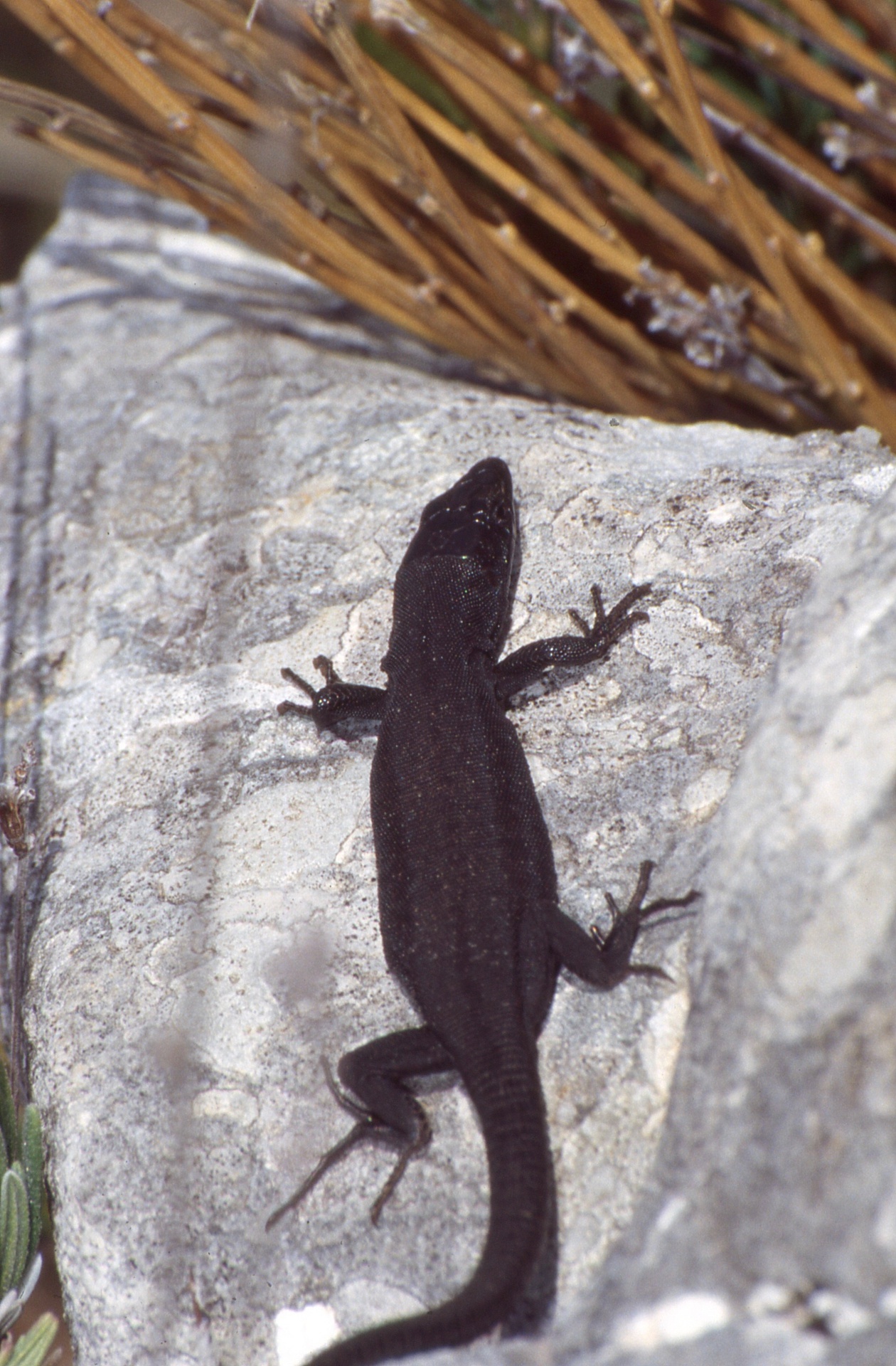 Podarcis liolepis, the Columbretes wall lizard or Catalan wall lizard, is very similar to the other lizards in the genus Podarcis. This species was formerly described as a subspecies of the Iberian wall lizard, but has now been elevated to species status. These are slender lizards with long tails, narrow tapered heads and long thin toes, and stout legs. Colours are variable, although generally grey-brown. Often very subtle spots and stripes along the back and flanks can be seen and these can be more distinguished in the female. The underside is a much lighter cream or beige with sometimes a reddish tint. Adults grow 15–20 cm in length from the nose to tip of the tail. Body length can be a little as one third of the total body length, the tail making up the other two thirds.