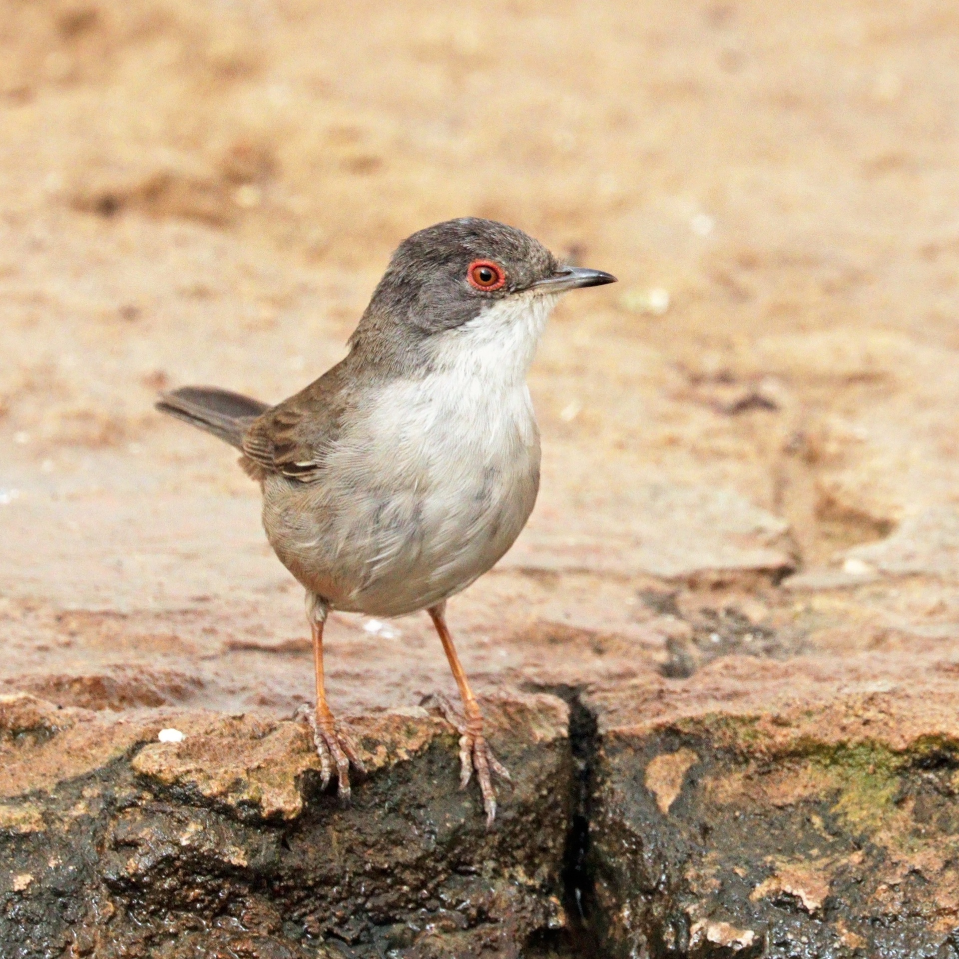 The Sardinian warbler (Curruca melanocephala) is a common and widespread typical warbler from the Mediterranean region. Like most Curruca species, it has distinct male and female plumages. The adult male has a grey back, whitish underparts, black head, white throat and red eyes. Plumages are somewhat variable even in the same locality, with the intensity of a reddish hue on upper- and/or underside varies from absent to (in some subspecies) pronounced. The female is mainly brown above and buff below, with a grey head. The Sardinian warbler's song is fast and rattling, and is very characteristic of the Mediterranean areas where this bird breeds.