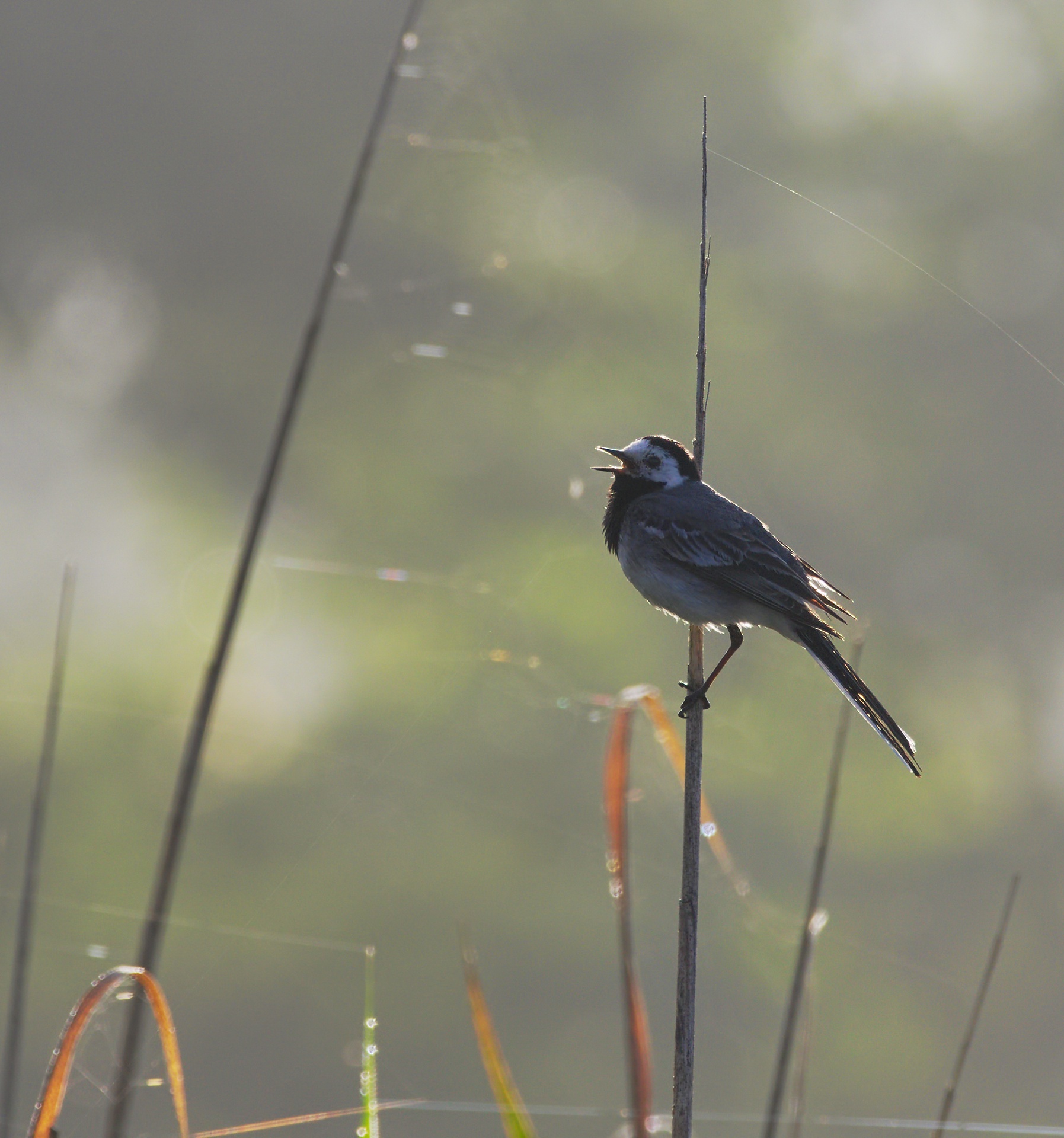 Fa 17-19 cm de llargària total i 31 cm d'envergadura alar. Pesa 23 g. El mantell és de color gris, negre i blanc i, per sota, és tot blanc. Té una cua molt llarga, negra i estreta que remena amunt i avall constantment. A l'estiu el mascle té la coroneta i nuca negres ben delimitades del gris del dors, el front, la part anterior de la coroneta i els costats de la cara blancs i un baverall negre intens, bandes alars i vores de les terciàries blanques. La femella és molt semblant al mascle però amb molt més gris a la coroneta i el baverall molt menys extens. A l'hivern el mentó i la gorga són blanc brut, franja pectoral negra i front blanc amb lleugers matisos groguencs. Els joves tenen les galtes, la coroneta i les bandes pectorals grises.