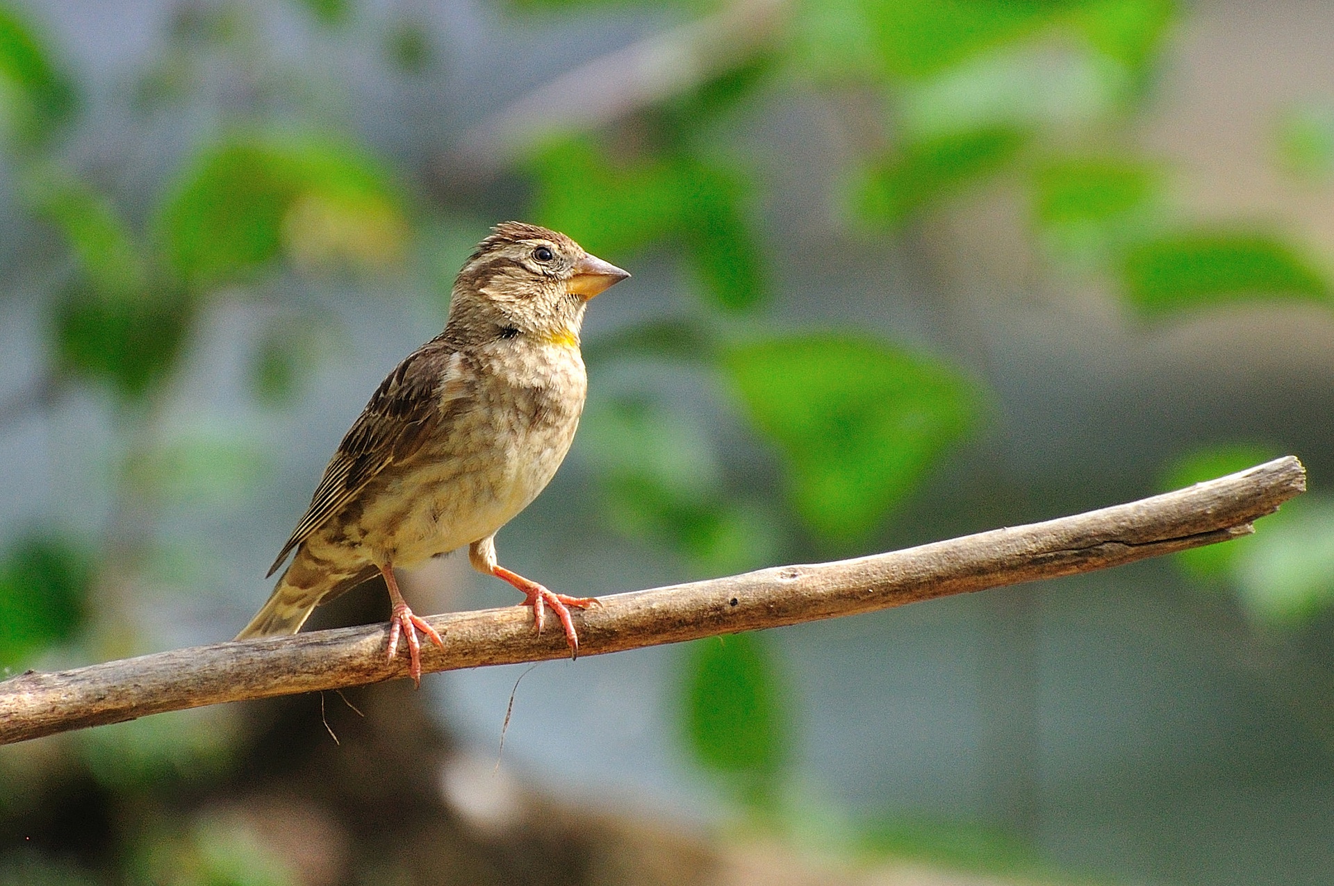 Fa 14 cm. de llargària total. Sembla una femella de teuladí (Passer domesticus) però més rabassut i ratllat. Té la cua més curta i cap més voluminós que el pardal comú. És de color gris bru, ratllat de bru fosc amb les parts inferiors més pàl·lides. Té una pàl·lida taca groga difosa a la gola dels adults. A la punta de les plomes de la cua té unes taques blanques molt visibles en el moment d'aterrar. La cella és de color clar. Els sexes són similars i els joves són bastant semblant als adults.