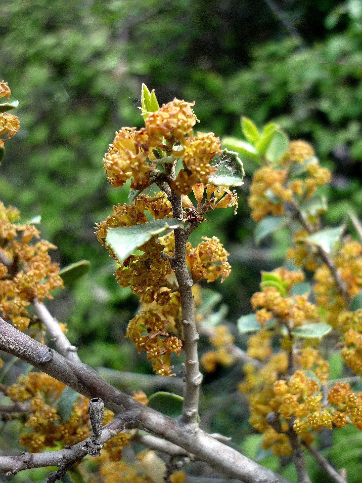 L'aladern és una planta dioica, amb individus masculins i femenins. Floreix a la primavera i fructifica a l'estiu; els fruits són esfèrics, de 4 a 6 mm, primer vermells i després negres quan maduren. Els fruits contenen 3 llavors. És un arbust molt resistent a la secada que, encara que molt freqüent en els alzinars, mai no domina el paisatge. Creix habitualment entre 0 i els 1.000 metres d'altitud.