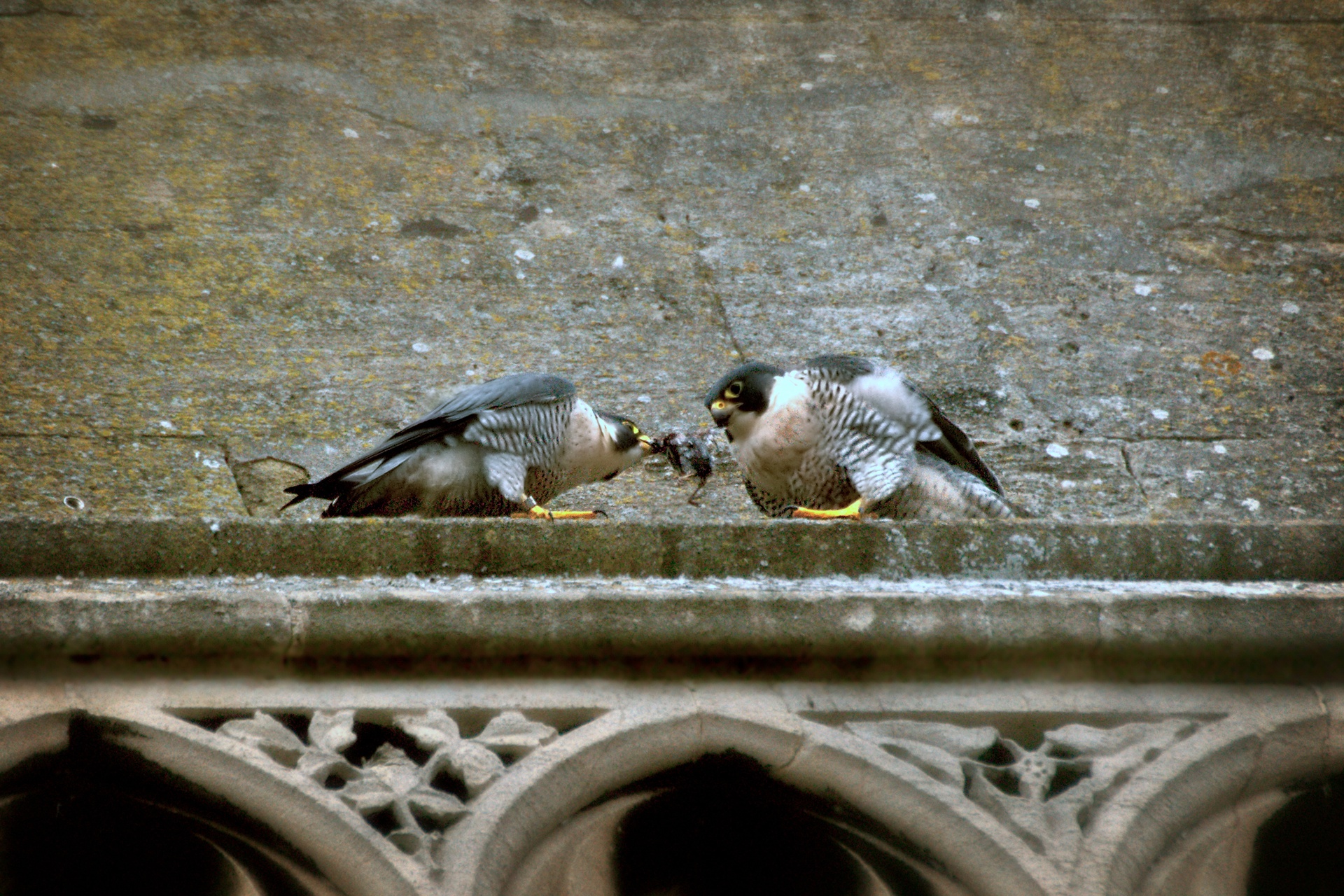 The peregrine falcon (Falco peregrinus), also known as the peregrine, and historically as the duck hawk in North America, is a cosmopolitan bird of prey (raptor) in the family Falconidae. A large, crow-sized falcon, it has a blue-grey back, barred white underparts, and a black head. The peregrine is renowned for its speed, reaching over 320 km/h (200 mph) during its characteristic hunting stoop (high-speed dive), making it the fastest bird in the world, as well as the fastest member of the animal kingdom. According to a National Geographic TV program, the highest measured speed of a peregrine falcon is 389 km/h (242 mph). As is typical for bird-eating raptors, peregrine falcons are sexually dimorphic, with females being considerably larger than males.The peregrine's breeding range includes land regions from the Arctic tundra to the tropics. It can be found nearly everywhere on Earth, except extreme polar regions, very high mountains, and most tropical rainforests; the only major ice-free landmass from which it is entirely absent is New Zealand. This makes it the world's most widespread raptor, and one of the most widely found bird species. In fact, the only land-based bird species found over a larger geographic area is not always naturally occurring, but one widely introduced by humans, the rock pigeon, which in turn now supports many peregrine populations as a prey species. The peregrine is a highly successful example of urban wildlife in much of its range, taking advantage of tall buildings as nest sites and an abundance of prey such as pigeons and ducks. Both the English and scientific names of this species mean "wandering falcon," referring to the migratory habits of many northern populations. Experts recognize 17 to 19 subspecies, which vary in appearance and range; disagreement exists over whether the distinctive Barbary falcon is represented by two subspecies of Falco peregrinus, or is a separate species, F. pelegrinoides. The two species' divergence is relatively recent, during the time of the last ice age, therefore the genetic differential between them (and also the difference in their appearance) is relatively tiny. They are only about 0.6–0.8% genetically differentiated.Although its diet consists almost exclusively of medium-sized birds, the peregrine will sometimes hunt small mammals, small reptiles, or even insects. Reaching sexual maturity at one year, it mates for life and nests in a scrape, normally on cliff edges or, in recent times, on tall human-made structures. The peregrine falcon became an endangered species in many areas because of the widespread use of certain pesticides, especially DDT. Since the ban on DDT from the early 1970s, populations have recovered, supported by large-scale protection of nesting places and releases to the wild.The peregrine falcon is a well-respected falconry bird due to its strong hunting ability, high trainability, versatility, and availability via captive breeding. It is effective on most game bird species, from small to large. It has also been used as a religious, royal, or national symbol across multiple eras and areas of human civilization.