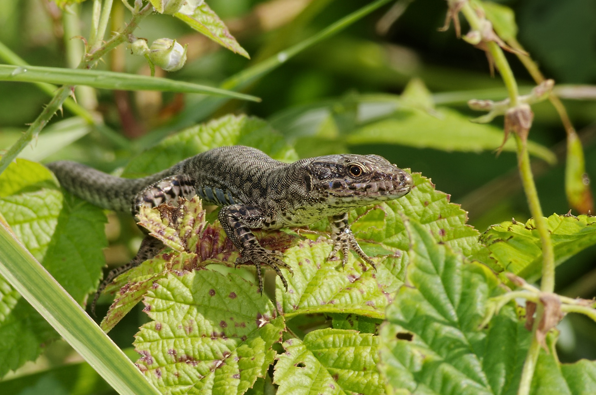 Podarcis muralis (common wall lizard) is a species of lizard with a large distribution in Europe and well-established introduced populations in North America, where it is also called the European wall lizard. It can grow to about 20 cm (7.9 in) in total length.
