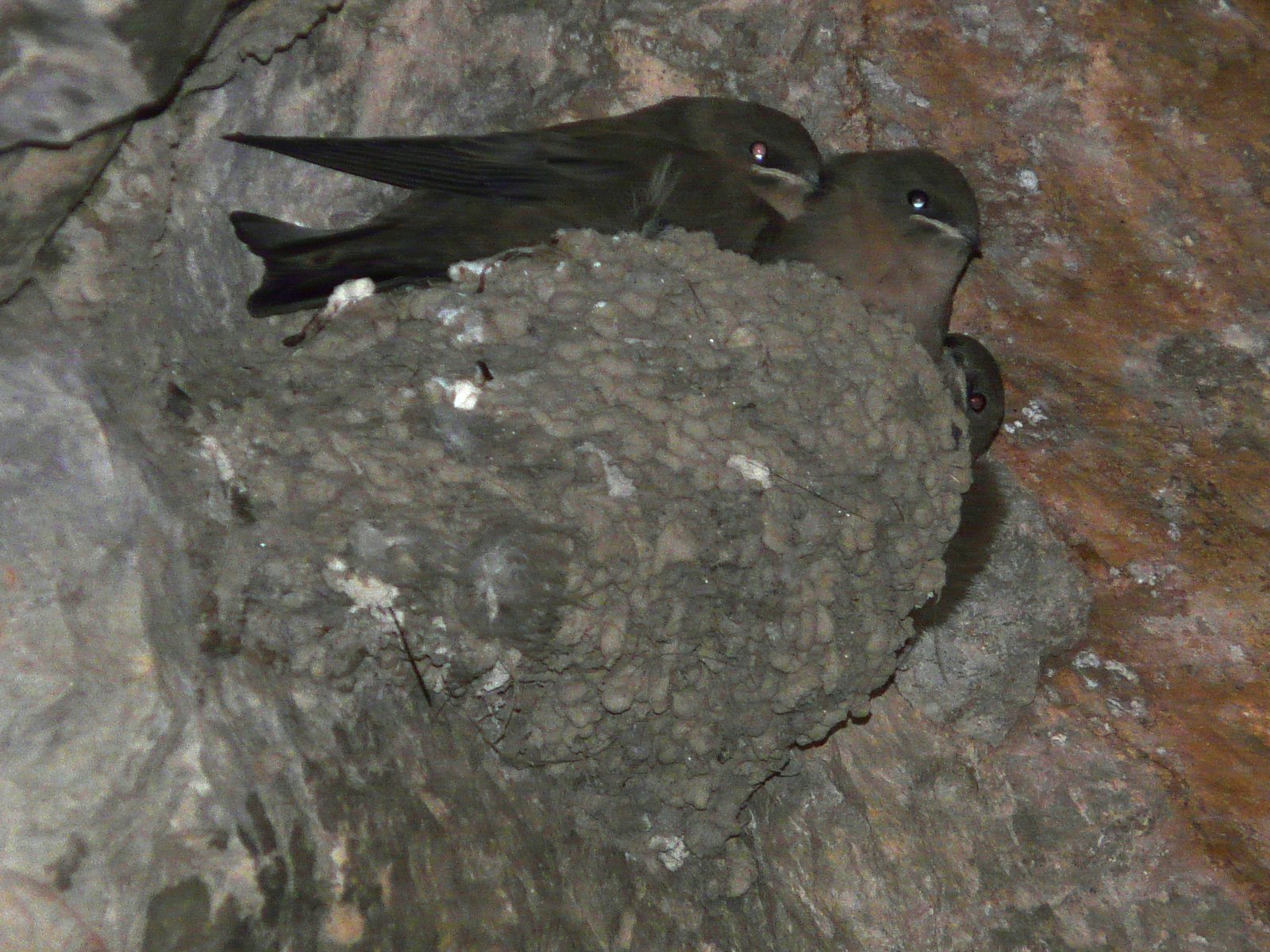 The Eurasian crag martin builds a nest adherent to the rock under a cliff overhang or increasingly onto a man-made structure. It makes a neat half-cup mud nest with an inner soft lining of feathers and dry grass. Nests are often solitary, although a few pairs may breed relatively close together at good locations. Two to five brown-blotched white eggs are incubated mainly by the female, and both parents feed the chicks. This species does not form large breeding colonies, but is gregarious outside the breeding season. It feeds on a wide variety of insects that it catches with its beak as the martin flies near to cliff faces or over streams and alpine meadows. Adults and young may be hunted and eaten by birds of prey or corvids, and this species is a host of blood-sucking mites. With its large, expanding range and large population, there are no significant conservation concerns involving the species.