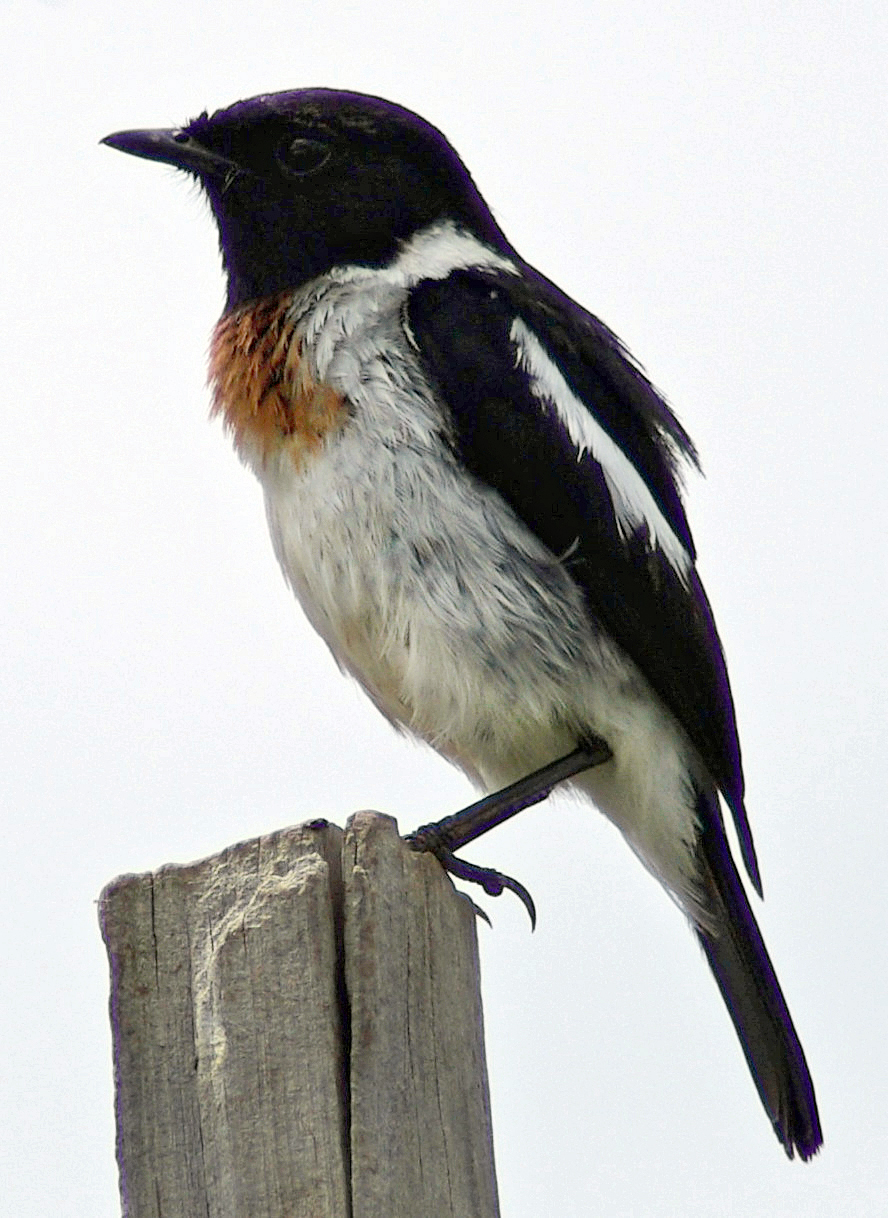 The African stonechat or common stonechat (Saxicola torquatus) is a species of the Old World flycatcher family (Muscicapidae), inhabiting sub-Saharan Africa and adjacent regions. Like the other chats, it was long assigned to the thrush family (Turdidae), to which the chats are convergent. Its scientific name refer to its appearance and habitat and means "collared rock-dweller": Saxicola from Latin saxum ("rock") + incola ("one who dwells in a place"), torquatus, Latin for "collared".